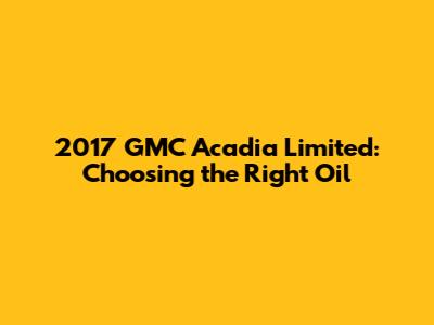 For the 2017 GMC Acadia Limited, the recommended oil grade is typically SAE 5W-30. This grade provides good protection in a wide range of temperatures, making it suitable for most climates. However, always refer to your owner's manual to confirm the correct oil grade for your specific vehicle and driving conditions.