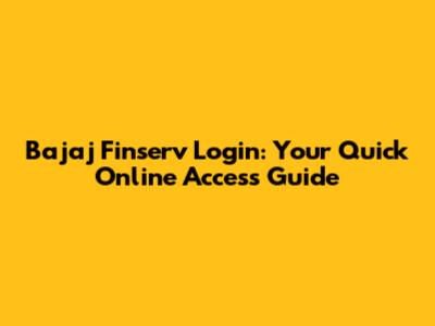 Bajaj Finserv Login: Your Quick Online Access Guide