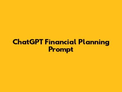 Key Financial Planning Prompts for ChatGPT