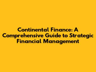 Continental Finance: Guide To Strategic Financial Management