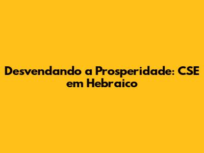 Desvendando A Prosperidade: CSE Em Hebraico