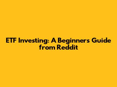 ETF Investing: A Beginner's Guide From Reddit
