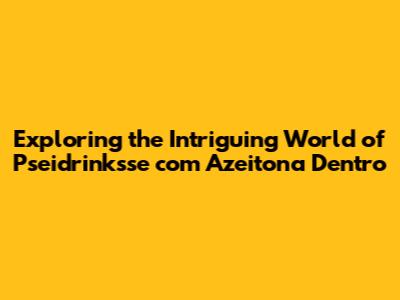 Exploring The Intriguing World Of Pseidrinksse Com Azeitona Dentro