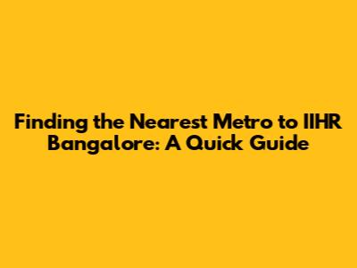 Finding The Nearest Metro To IIHR Bangalore: A Quick Guide