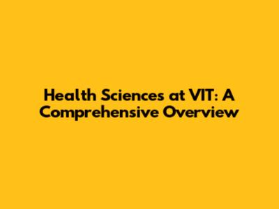 Health Sciences At VIT: A Comprehensive Overview