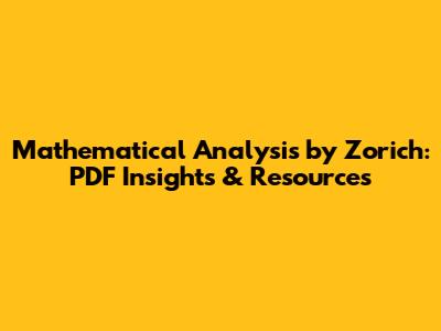 Mathematical Analysis By Zorich: PDF Insights & Resources