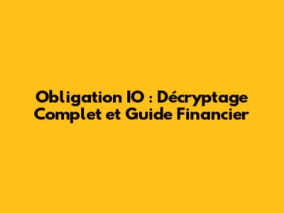 Obligation IO : Décryptage Complet Et Guide Financier