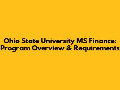 Ohio State MS Finance: Program Overview & Requirements