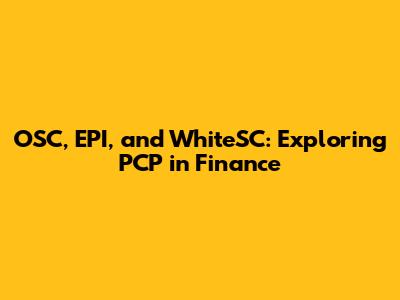 OSC, EPI, And WhiteSC: Exploring PCP In Finance