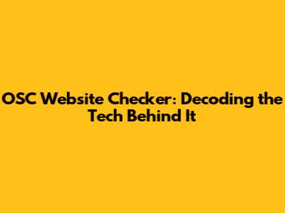OSC Website Checker: Decoding The Tech Behind It