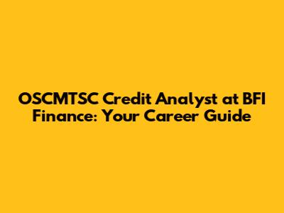 OSCMTSC Credit Analyst Role At BFI Finance: A Comprehensive Guide