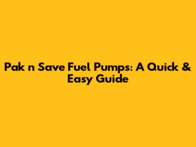 Pak N Save Fuel Pumps: A Quick & Easy Guide