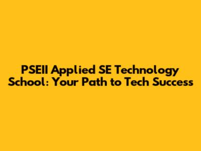 PSEII Applied SE Technology School: Your Path To Tech Success