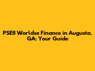 PSEII Worldse Finance In Augusta, GA: Your Guide