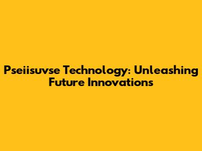 Pseiisuvse Technology: Unleashing Future Innovations