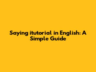 Saying 'itutorial' In English: A Simple Guide