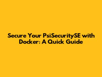 Secure Your PsiSecuritySE With Docker: A Quick Guide