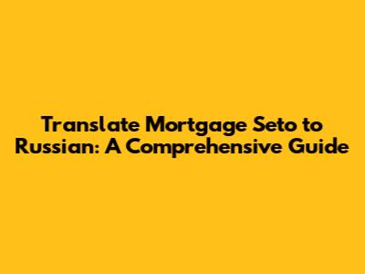 Translate Mortgage Seto To Russian: A Comprehensive Guide
