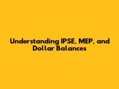 Understanding IPSE, MEP, And Dollar Balances